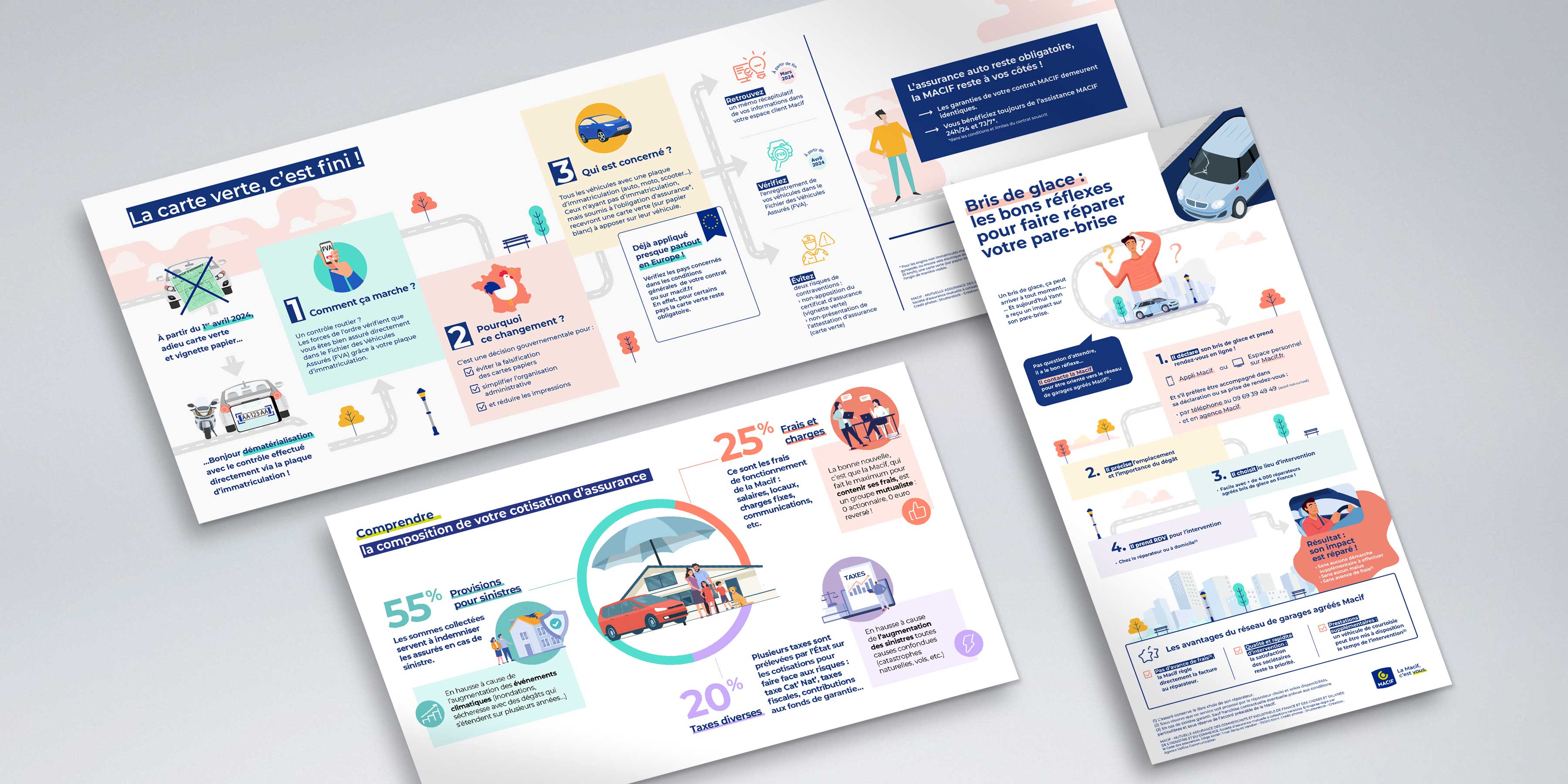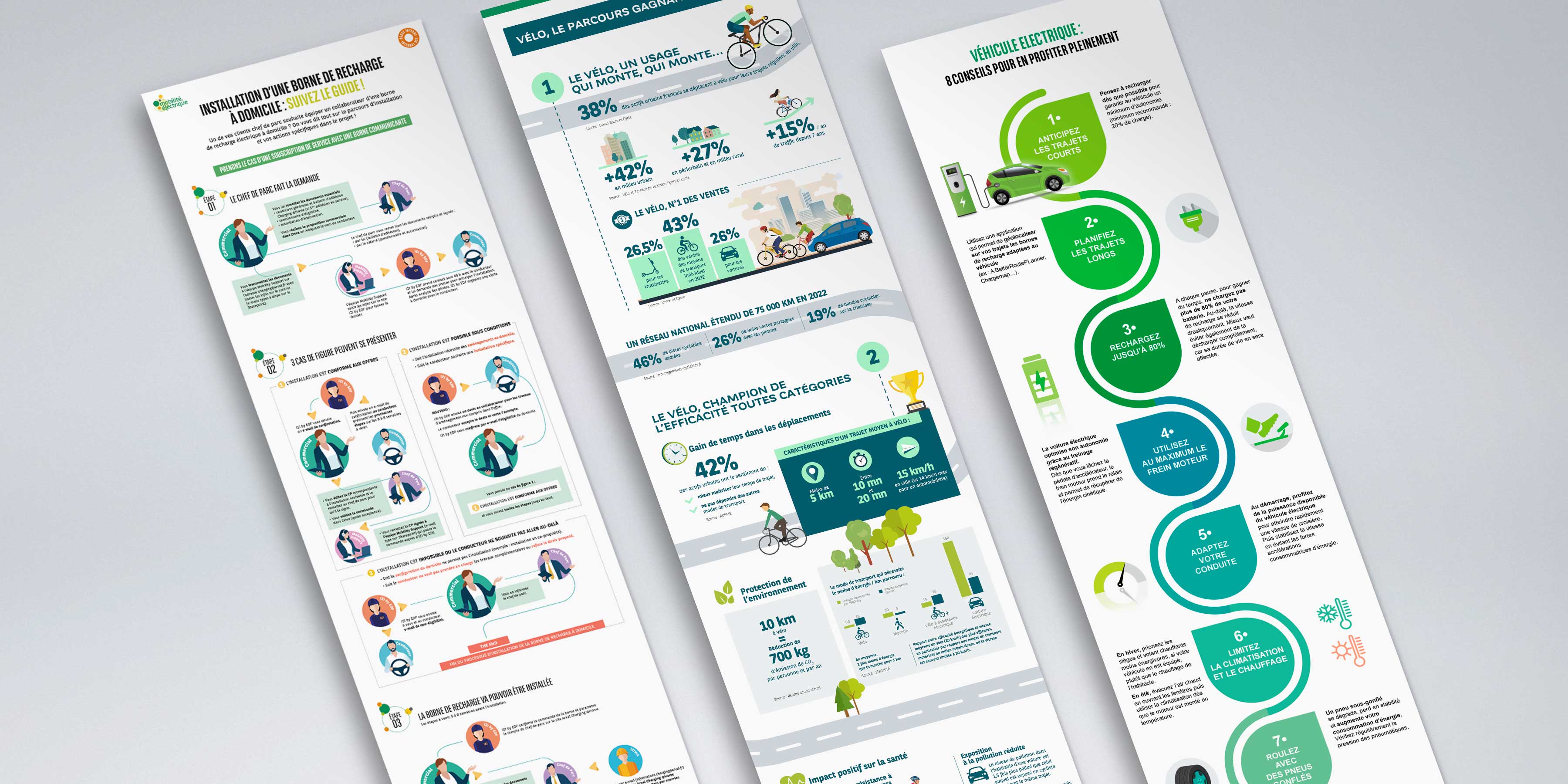 C’est que l’infographie n’est pas loin. Hyper tendance car hyper visuelle, elle permet de poser le sujet en images et en couleurs. Pour les rendre encore plus pédagogiques, l’agence réalise des infographies balisées et accessibles, qui savent rendre fun et ludiques chiffres et graphiques. Pour une lecture claire et limpide, même des sujets les plus complexes.