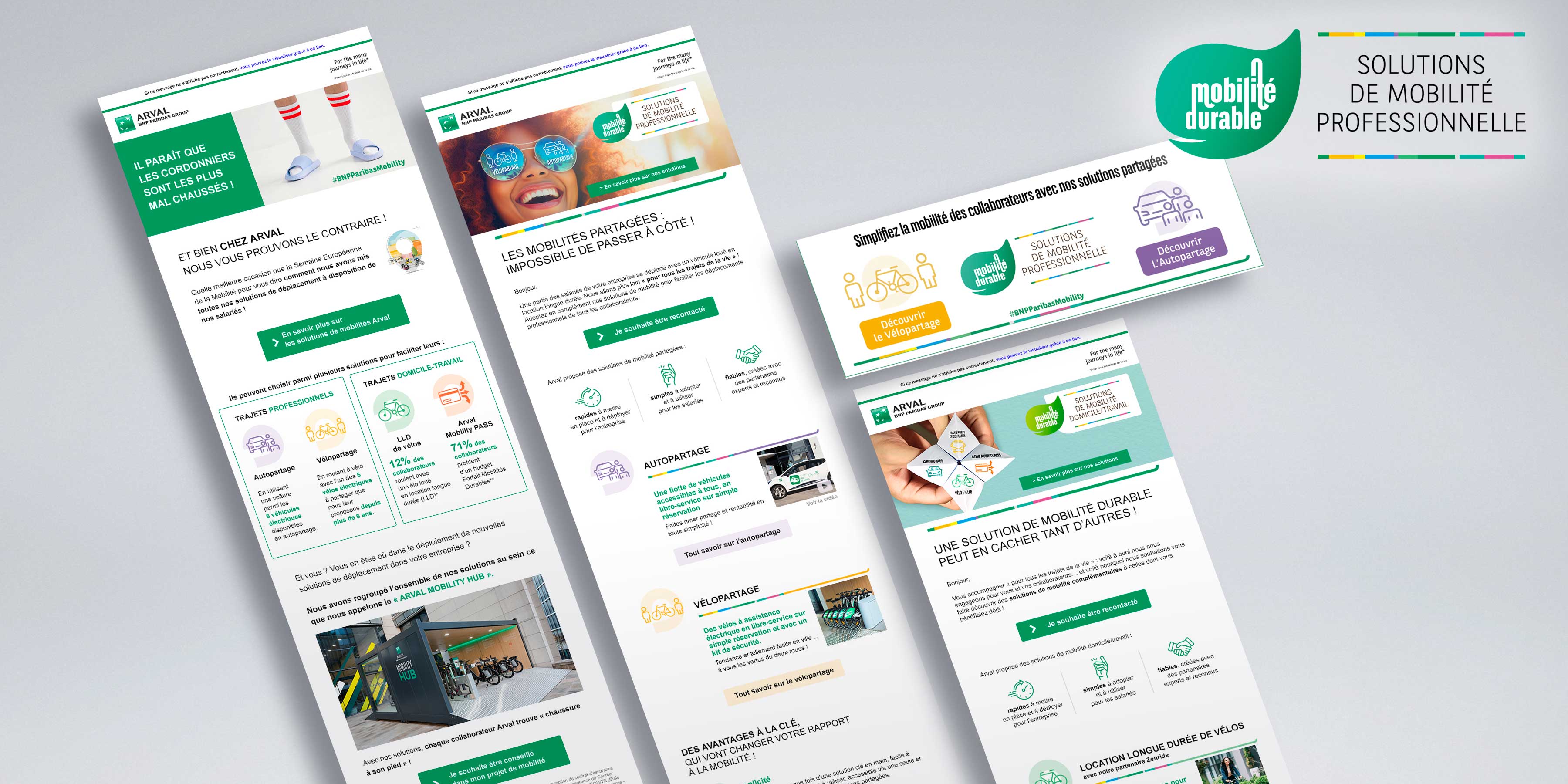 Lancées sous le label Mobilité durable, les solutions professionnelles Arval viennent simplifier la mobilité en entreprise. On le fait savoir en déployant une campagne digitale et opérationnelle à destination des gestionnaires de flotte et des salariés : vélo ou autopartage, LLD de véhicules électriques, covoiturage, Arval Mobility Pass… Rien de ce qui est mobile et durable ne leur sera inconnu.